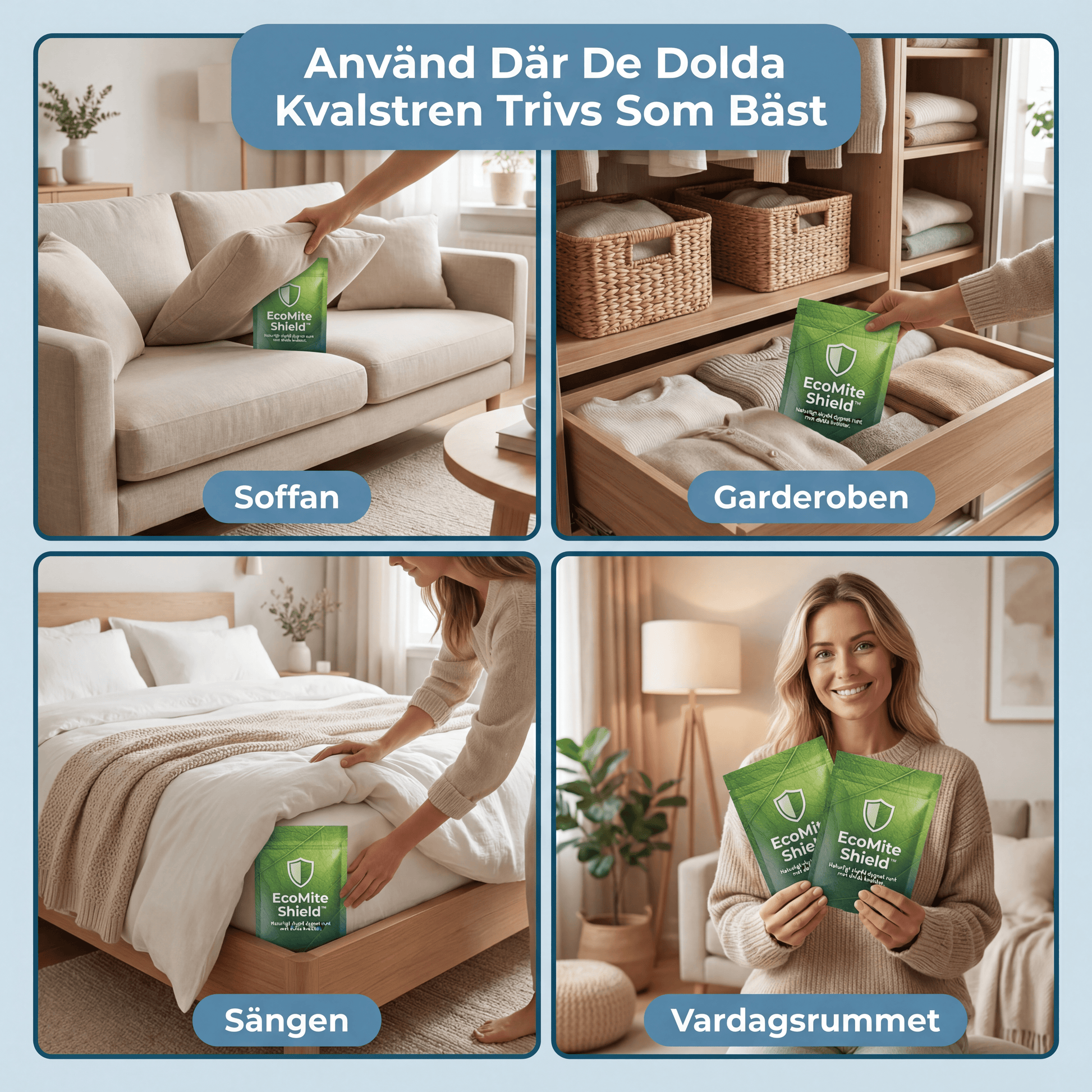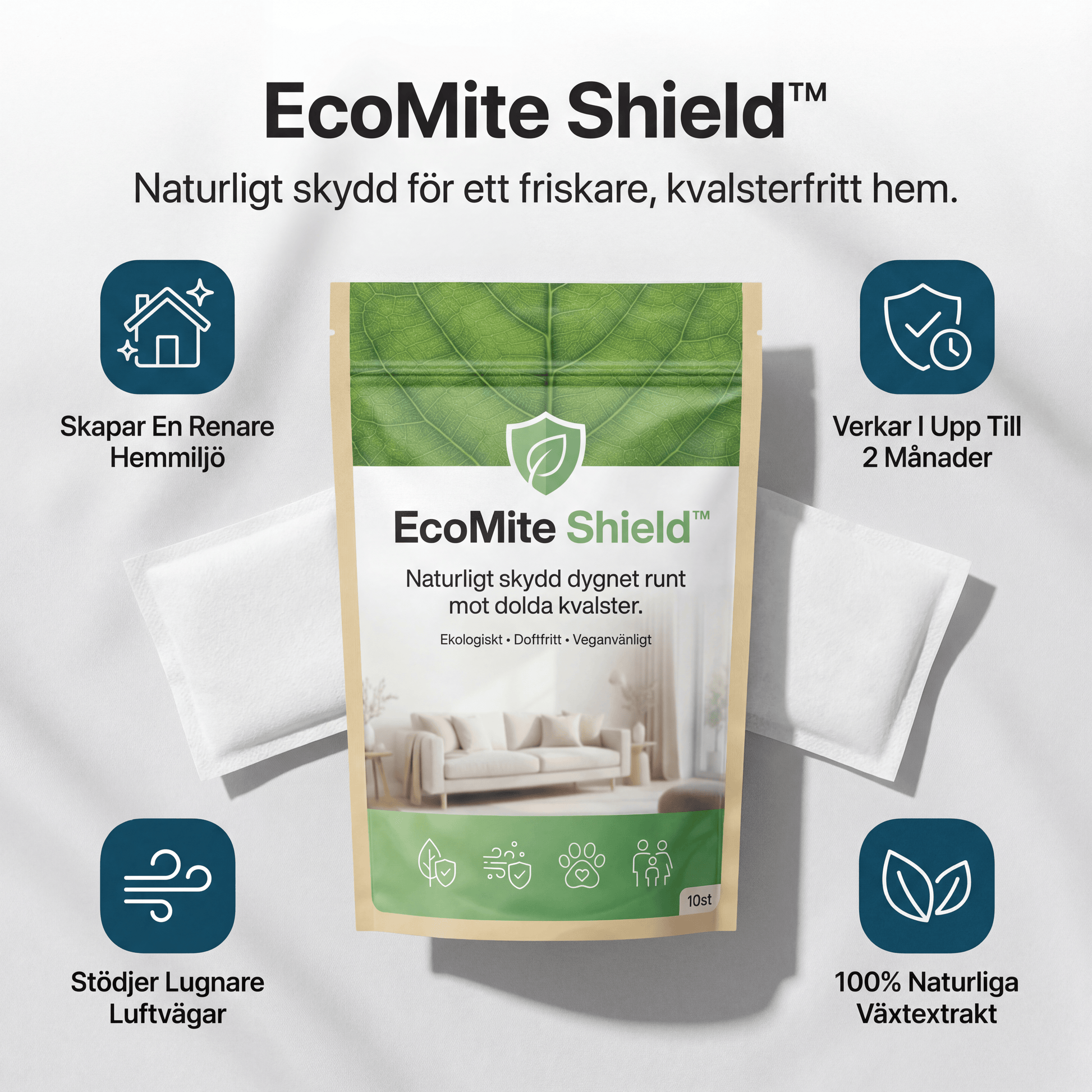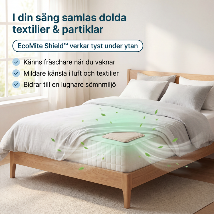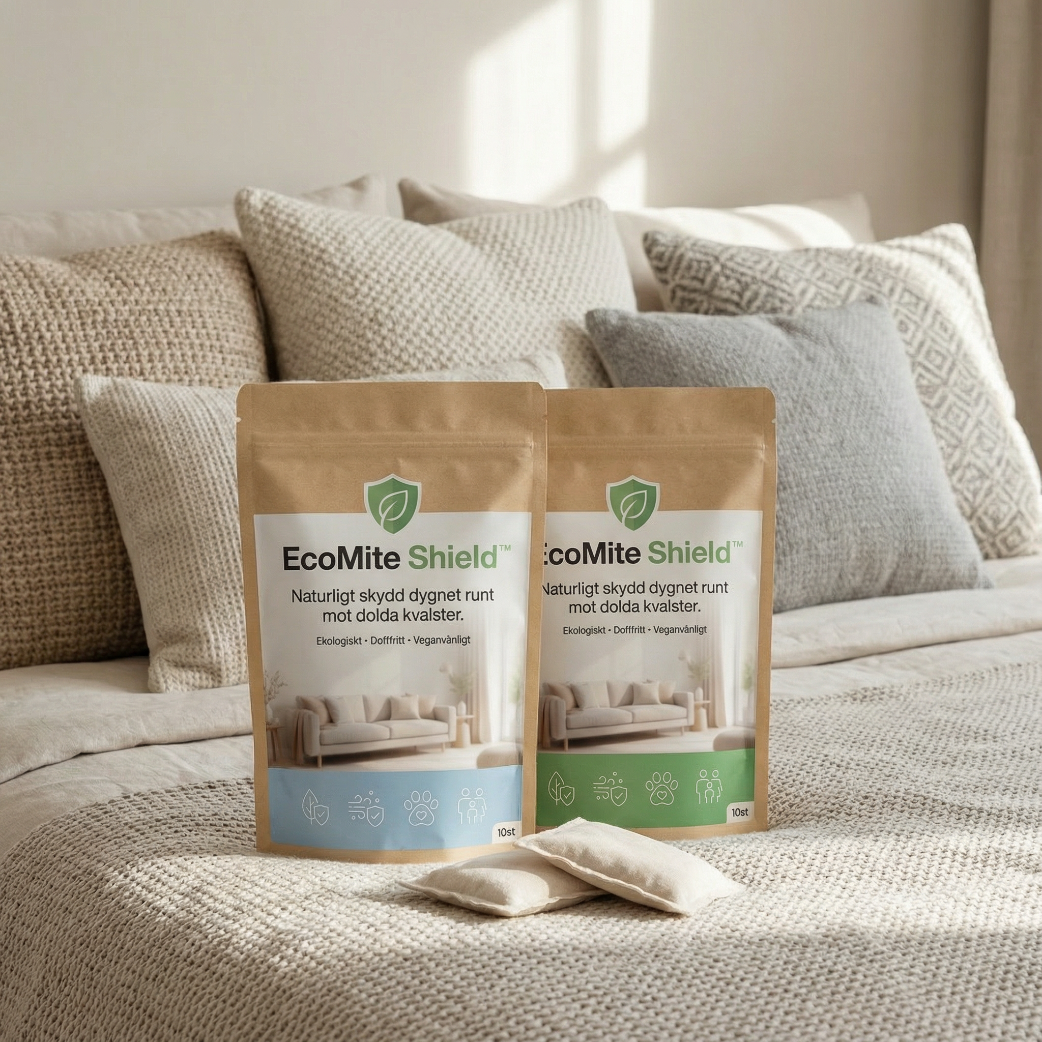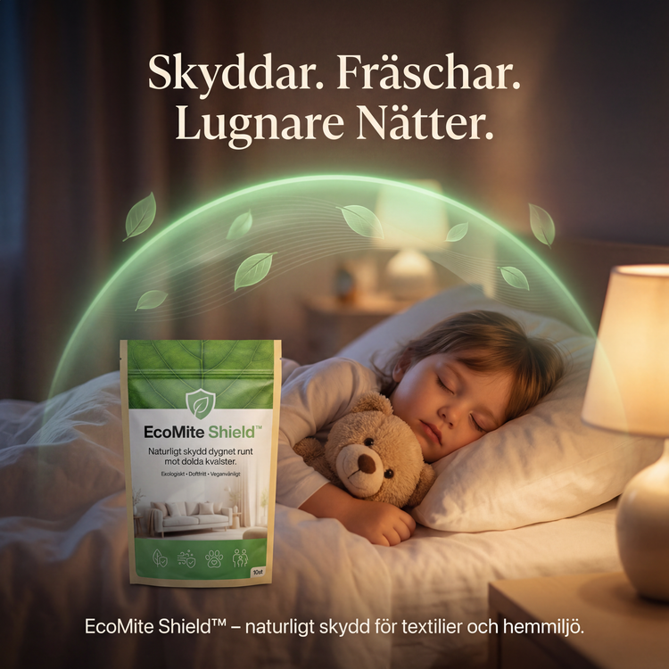 Vaknar du eller ditt barn täppt, trött eller irriterad i halsen trots att allt ser städat ut? Det beror sällan på damm ovanpå ytorna utan på miljoner osynliga kvalster djupt inne i madrasser, soffor och textilier. EcoMite Shield™ är utvecklat för dig som är trött på halvlösningar och vill skapa en trygg, naturlig och allergivänlig hemmiljö utan starka kemikalier eller ännu fler tidskrävande rutiner.