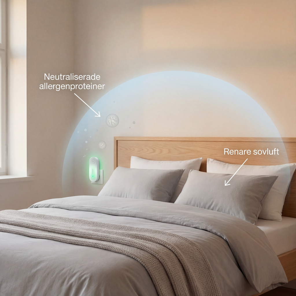 Obs: Allergener neutraliseras gradvis, så förbättringen fortsätter över flera nätter.