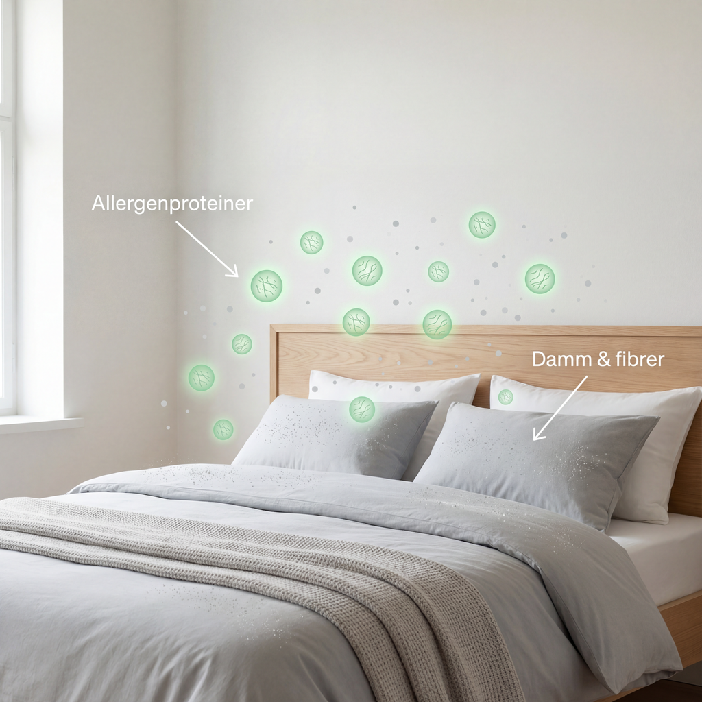 Trots städning, vädring och rena lakan vaknar du eller ditt barn med täppt näsa. Det är inte dammet du ser som är problemet, utan de osynliga allergenproteinerna från kvalster som irriterar luftvägarna varje natt. Cleaniqo är utvecklad för att ta bort just det som ingen vanlig städning eller luftfilterlösning rår på.